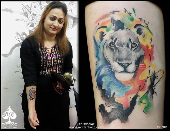It is an abstract imagery of a lion with the water color being used to color the mane of the lion and grayscale has been used to color the face, giving it a more vivid yet gritty appearance. This tattoo is a perfect example of the mysticism that is present in the lion; as a spirit animal and thus gets marked as one of the best lion tattoos on arm in our collection.