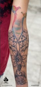 Life and death are the best teacher to give u lessons of attachment as well as detachment and that’s what he explained me when he said m looking for my next tattoo di, i was sure m giving him something he feels connected to all his life and what more could have i asked for except for some artistic freedom from our old client dharmesh anchan . He wanted a eye to signify peace and we were sure he was right about it and the most beautiful part was adding on his favorite parrots he loves so much he would never cage them but let them fly , because when u love someone u let them b in their element and not change them to your likes our human would always want a ace element in his tattoo and hence we did those little aces in the mandala which don’t shout too much but will always b there along his side.Life and death are the best teacher to give u lessons of attachment as well as detachment and that’s what he explained me when he said m looking for my next tattoo di, i was sure m giving him something he feels connected to all his life and what more could have i asked for except for some artistic freedom from our old client dharmesh anchan . He wanted a eye to signify peace and we were sure he was right about it and the most beautiful part was adding on his favorite parrots he loves so much he would never cage them but let them fly , because when u love someone u let them b in their element and not change them to your likes our human would always want a ace element in his tattoo and hence we did those little aces in the mandala which don’t shout too much but will always b there along his side.