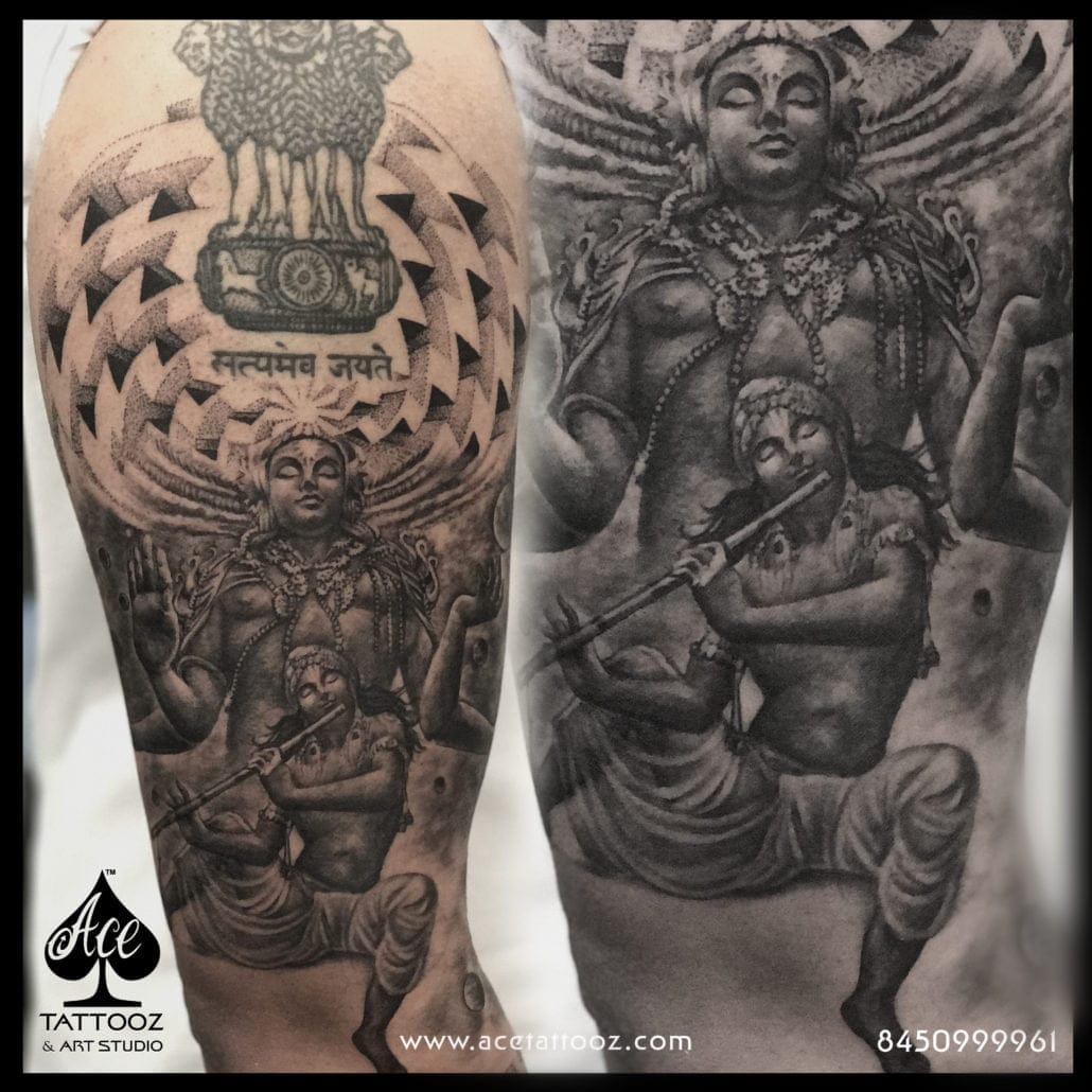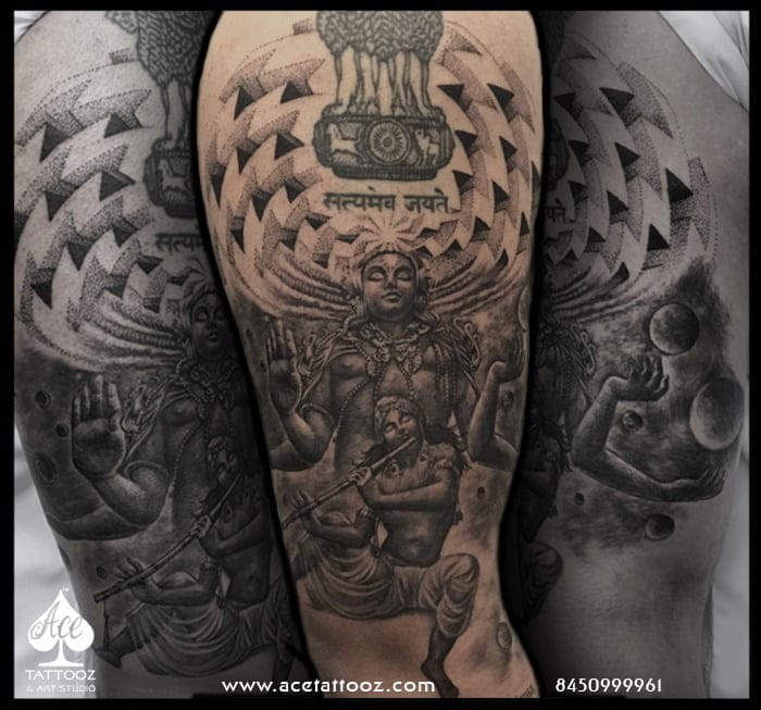 The client from USA wanted colourful Old School Koi Fish which are a common symbol in both Chinese culture and Feng Shui, depicted on artwork, clothing, tattoos and even with live fish used in landscape design. With specializing in best Color Tattoos & Realism Tattoos Archana has pulled this exceptionally well. Artist: Archana Nakhua Bhanushali