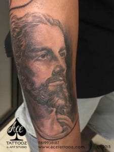 Our client had a rough idea about what he wanted and together we brain stormed and shortlisted this Jesus God Tattoo Designs for him. Needless to say he was very happy and satisfied with this design.