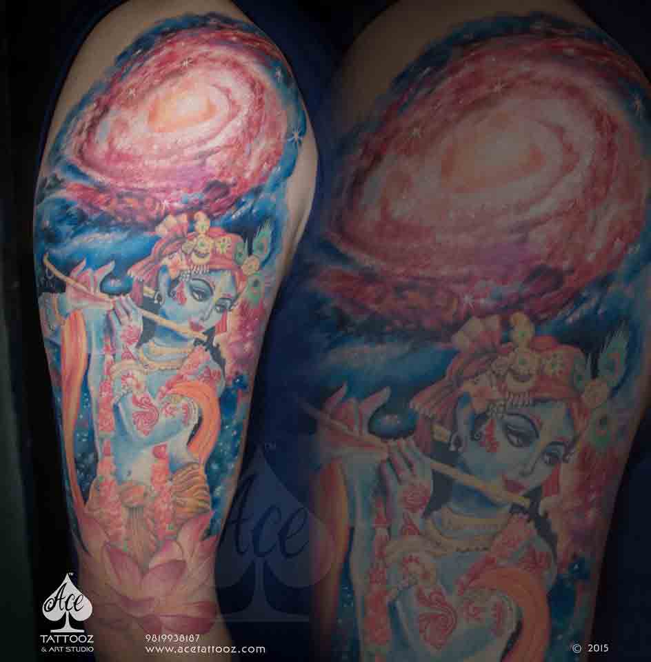 This Magical Award-Winning Krishna God Tattoo Designs Sleeve is a result of 10 hour continuous work. What an amazing piece of art by our artists