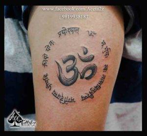Om Tattoo with mantra! The client believes in poweful effects of the word Om, hence wanted it to get inked.