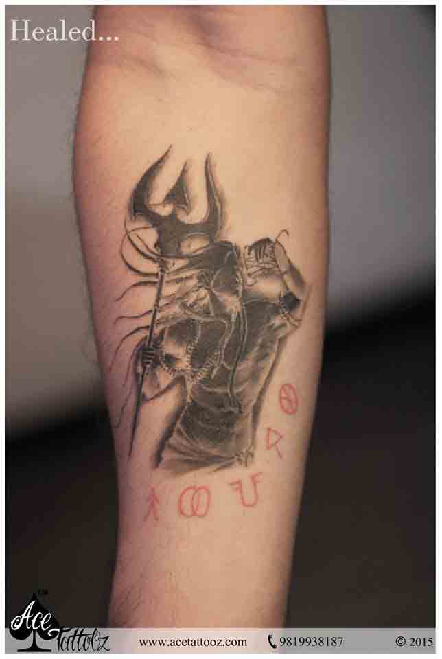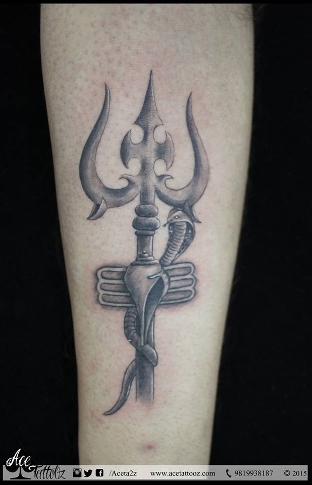 The trishul god tattoo designs depict the power of Shiva and his belongings. The Client being an ardent follower wanted a Lord Shiva tattoos design. This shows his dedication towards the Lord and was clear about the Trishul. Customised by our artist Upen Bhoir