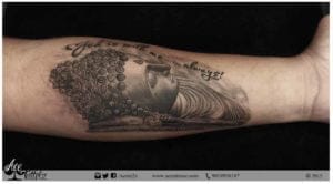 Beautiful Sleeping Buddha Tattoo created for a believer. "This God Tattoo Design gives me peace, calmness and strength to handle every hurdle with patience. Thank You Ace Tattooz"- Ravi Dubey, Client.