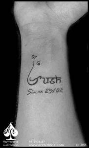 A very simple and clean God Tattoo Design on wrist for a client with customized slogan in Gujarati language..