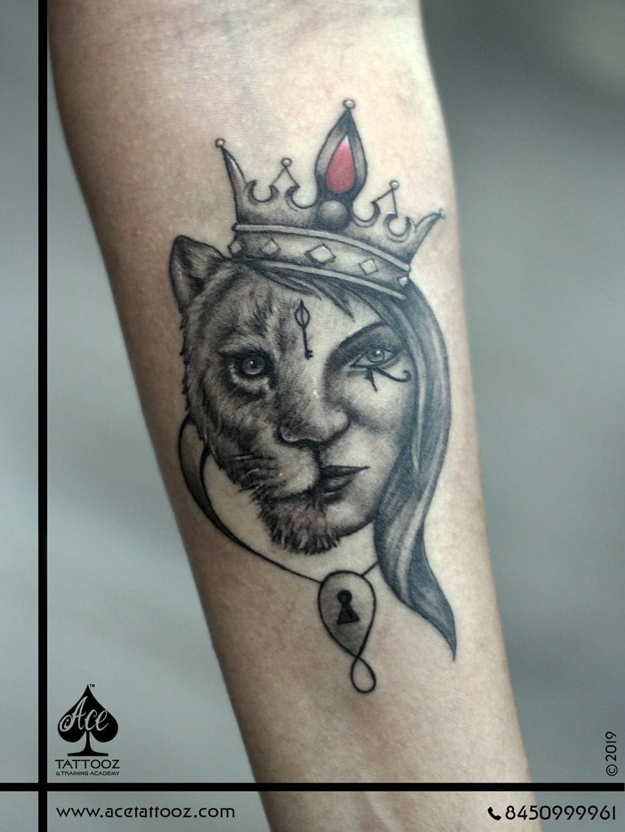LIONESS CROWN TATTOO