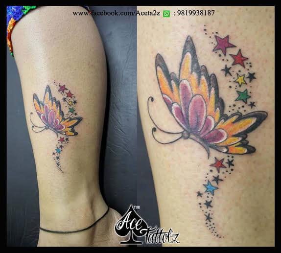 Colourful-Butterfly-Tattoo-on-Leg